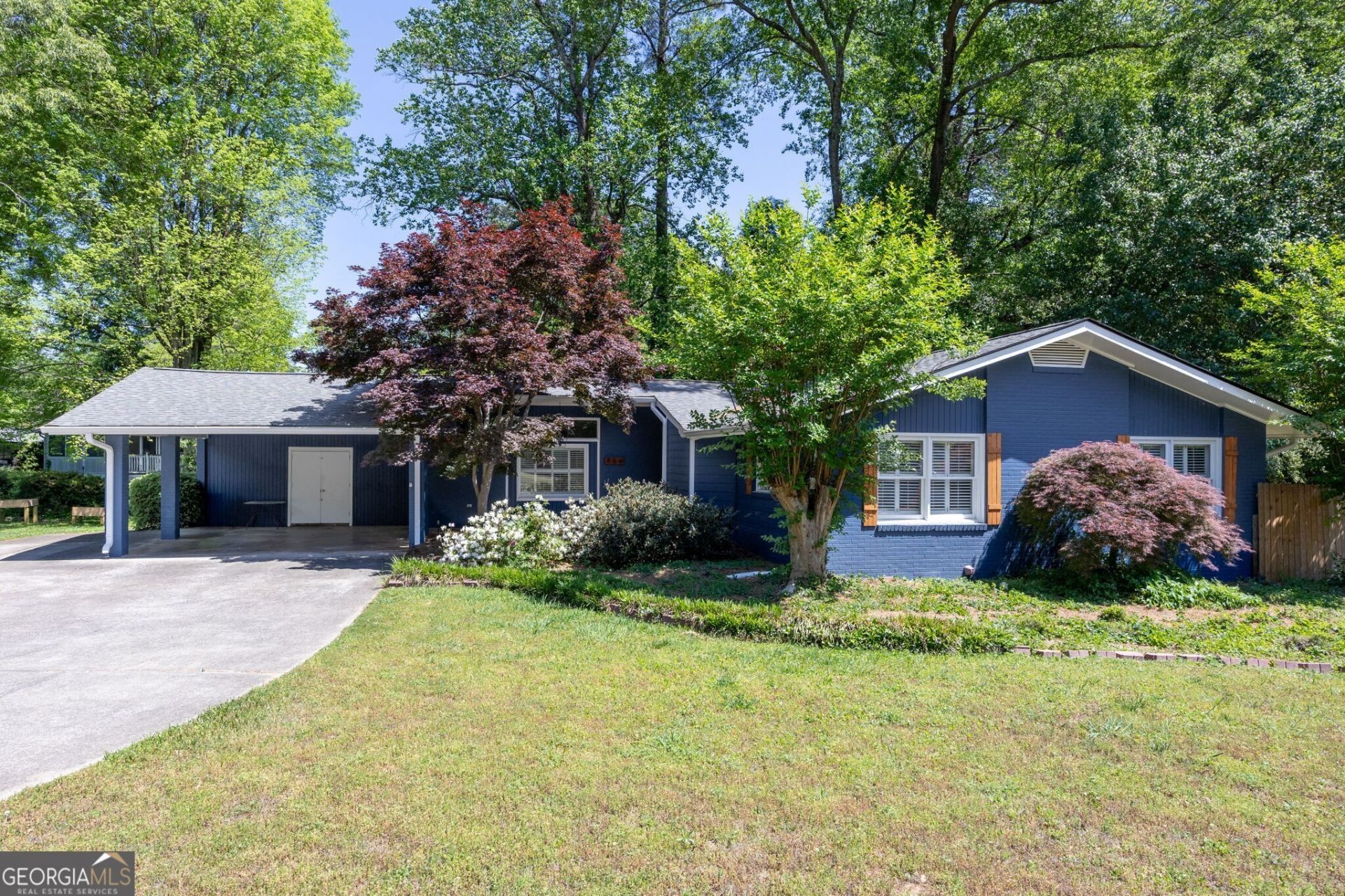 Discover East Cobb ease in the charming Dogwood Park neighborhood! This beautifully maintained ranch blends timeless character with thoughtful updates & an unbeatable location. From the moment you step inside, you'll feel right at home with a welcoming foyer that opens into a oversized family room featuring custom built-in cabinetry, perfect for extra storage or display. The bright, renovated kitchen offers white cabinetry, stylish backsplash, and a hidden barn door leading to a spacious dining room, creating the perfect setting for gatherings or everyday meals. Natural light fills the sunroom, offering a cozy retreat for morning coffee or a quiet reading nook. Down the hall, you'll find well-sized secondary bedrooms and a beautifully renovated hall bath featuring a tiled shower. The primary suite includes a custom built-in closet and an updated ensuite with a double vanity and tiled tub/shower combo, combining functionality with a fresh modern touch. Outside, the fenced yard invites you to unwind or entertain, with brick pavers leading to a charming side patio area. Additional highlights include a 4 year old roof, 5 year old water heater, fresh interior and exterior paint, plantation shutters, updated light fixtures, and a two-car carport with excellent storage space. The landscaped yard and well-cared-for details throughout make this home truly feel loved and move-in ready! Zoned for highly sought-after schools, including Wheeler High - home to the renowned Magnet STEM program - this East Cobb gem offers both everyday comfort and a vibrant lifestyle. Enjoy the best of parks, schools, and convenience with Terrell Mill Park and Cochran Shoals trails just moments away, plus quick access to The Battery & Truist Park, Marietta Square, Smyrna Market Village, East Cobb Avenues, Merchants Walk, and more - all from your charming Dogwood Park retreat!
